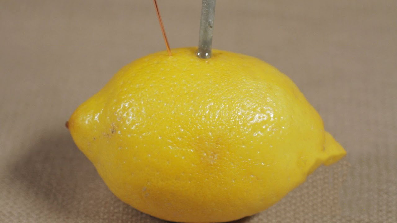 Продолжайте цепочку. Свободные концы (цинк первого лимона и медь последнего) и будут полюсами вашей батареи. Три-четыре таких элемента уже смогут зажечь светодиод или запустить электронные часы.