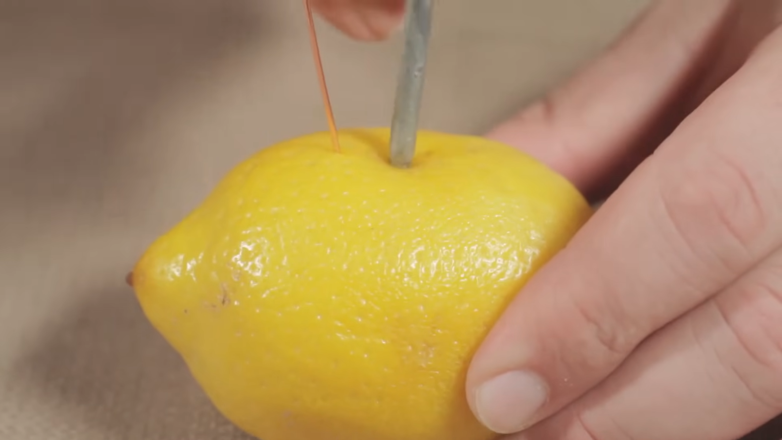 Подготовьте лимон: Немного помните или покатайте его, чтобы разрушить внутренние мешочки и высвободить больше сока — это улучшит контакт.