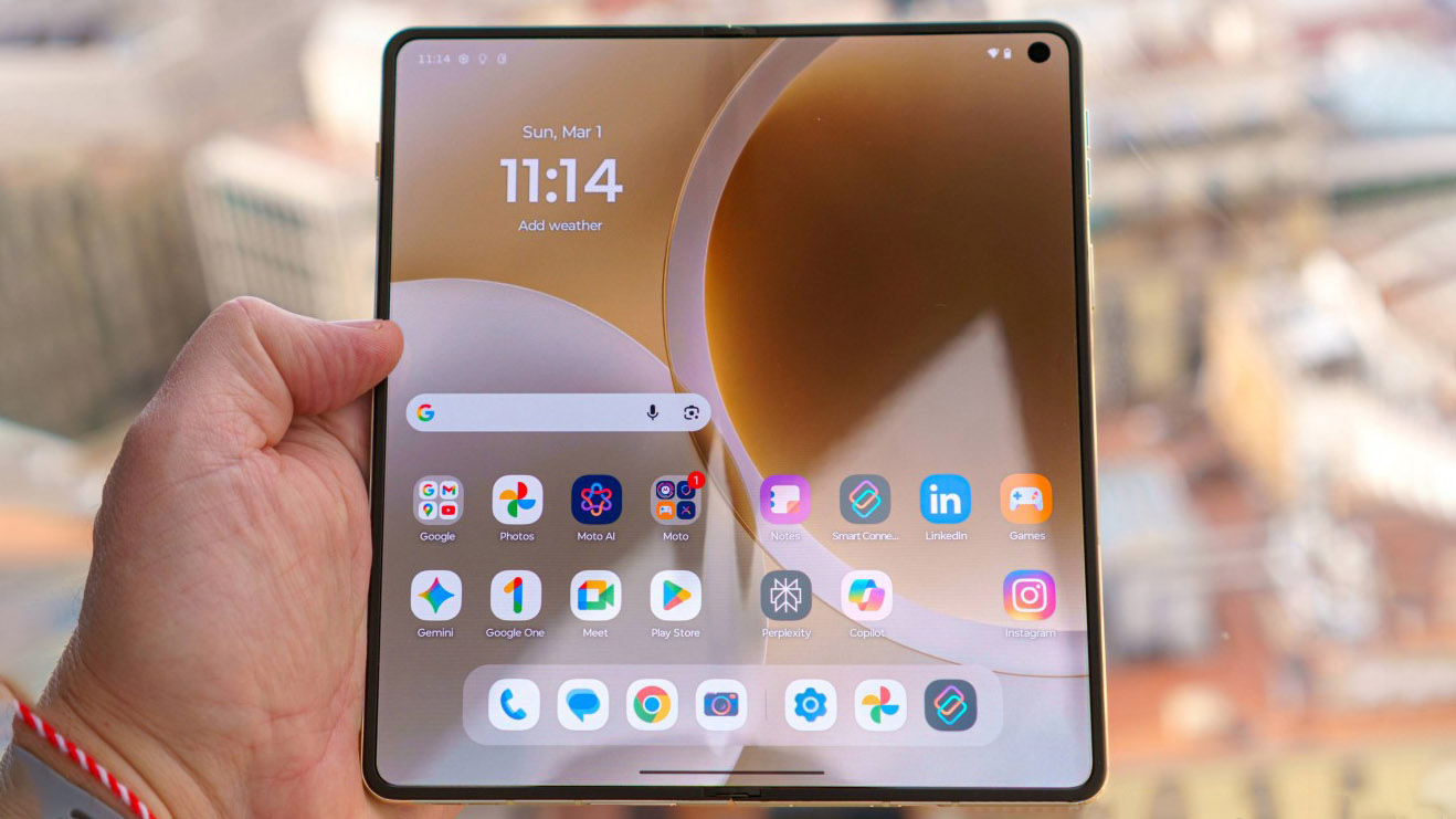 Яркость впечатляет: пиковая локальная — 6000 нит снаружи и 6200 нит внутри. Оба дисплея 10-битные, с Dolby Vision. По размерам экранов Razr Fold — один из лучших в классе, уступая разве что Oppo Find N5.
