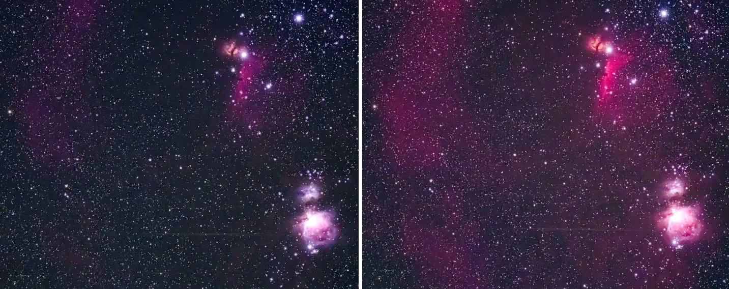 Сердцем новинки стал специальный инфракрасный фильтр, установленный перед сенсором. В отличие от обычных ИК-фильтров, которые блокируют инфракрасное излучение для точной цветопередачи в повседневной съёмке, фильтр в OM-3 Astro обладает оптическими характеристиками, которые обеспечивают почти 100% пропускание света на длине волны Hα (H-альфа). Эта линия излучения водорода в красной части спектра (656,28 нм) является ключевой для астрономов. Именно её излучение придаёт знаменитым эмиссионным туманностям, таким как Туманность Ориона, их насыщенный красный цвет и позволяет изучать структуру этих космических объектов. Благодаря новому фильтру камера сможет улавливать этот свет с максимальной эффективностью, что раньше требовало дорогостоящей модификации аппарата.