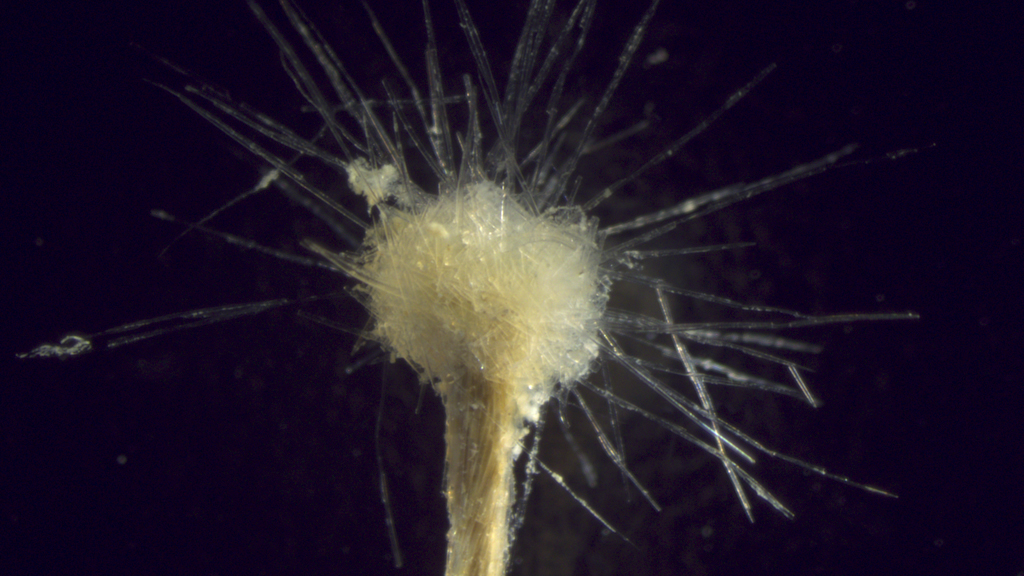 Эта фораминифера — настоящий архитектор и охотник-подражатель. Живя у гидротермальных источников, она не строит раковину из обычных материалов, а активно собирает и скрепляет кремнёвые иглы (спикулы) хищных морских губок. Собрав их в идеальный конус, она становится похожа на саму губку и использует эту «маскировку», чтобы ловить мелкую добычу. Учёные рассматривают её как живой индикатор здоровья океана и активности подводных источников.