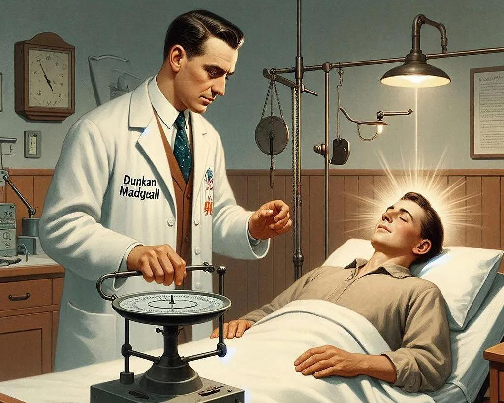 Для этого медик сконструировал сверхчувствительные весы, на которые помещал умирающих пациентов, и фиксировал изменение веса в момент смерти. В одном из случаев вес тела уменьшился примерно на 21 грамм – именно эту цифру Макдугалл и объявил весом души.