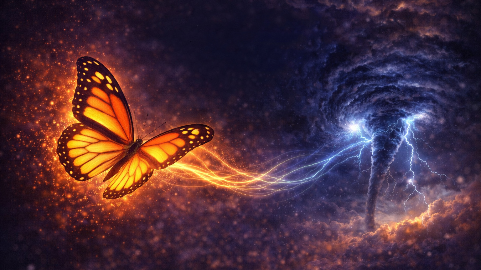 Эффект бабочки — это идея о том, что небольшое изменение в начальных условиях может привести к огромным последствиям в будущем. Он связан с теорией хаоса и описывает поведение сложных систем, таких как погода или движение атмосферы. Даже крошечная разница на старте способна полностью изменить результат.