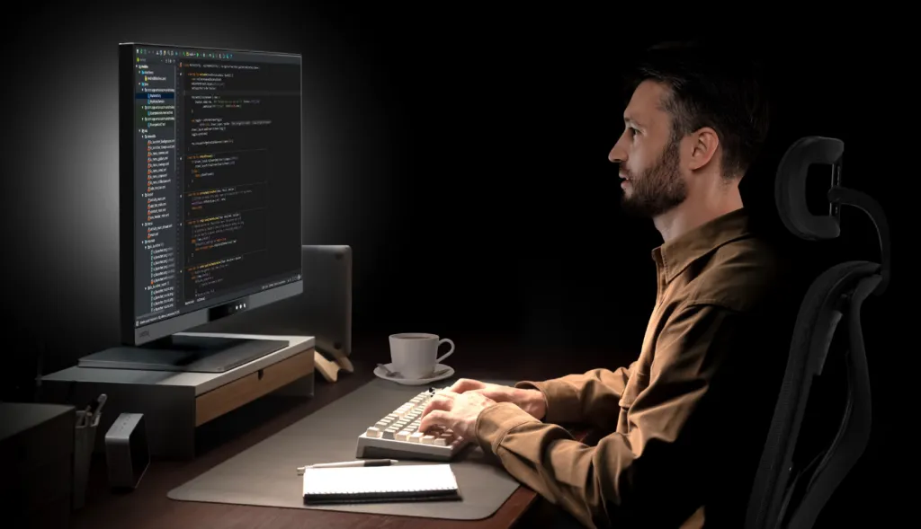Для программистов предусмотрены специальные режимы дисплея. Они регулируют контрастность и цветовой баланс в зависимости от выбранной темы (тёмной или светлой). Переключаться между режимами можно одной горячей клавишей — без погружения в меню. Дополнительные технологии визуального комфорта включают Paper Colour Mode (имитация бумаги для более мягкого изображения) и Night Hours Protection (снижение нагрузки на глаза в тёмное время суток). Подсветка MoonHalo создаёт сбалансированное окружающее освещение вокруг монитора.