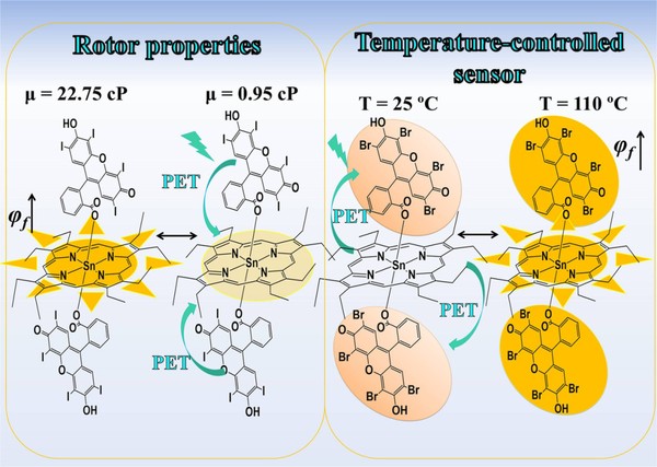 Введение молекул красителя в структуру порфирина позволило создать триады, реагирующие на изменения параметров окружающей среды. Полученные химические системы проявляют флуоресцентный отклик при изменении локальной кислотности (pH) и вязкости среды. Это свойство критически важно для исследования процессов фотоиндуцированного уничтожения раковых клеток в ходе фотодинамической терапии и открывает возможности для постоянного мониторинга терапевтического процесса в реальном времени.
