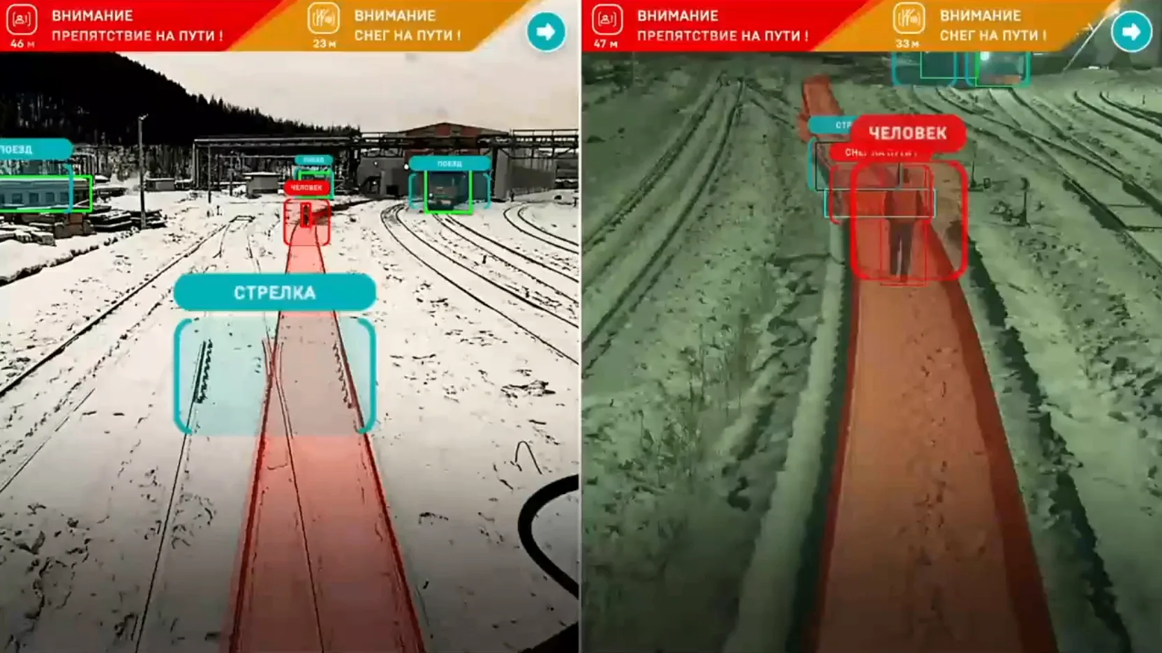 Новая система, основанная на технологиях компьютерного зрения, продемонстрировала высокую эффективность: видеокамеры непрерывно анализируют окружающее пространство, проверяя, свободен ли путь, оценивая размеры сооружений и состояние инфраструктуры. Система функционирует непрерывно вне зависимости от времени суток. Среди ее интересных особенностей – способность точно распознавать потенциально опасные участки даже в метель. Машинист своевременно получит предупреждение о препятствиях и сможет принять решение о дальнейшем движении.