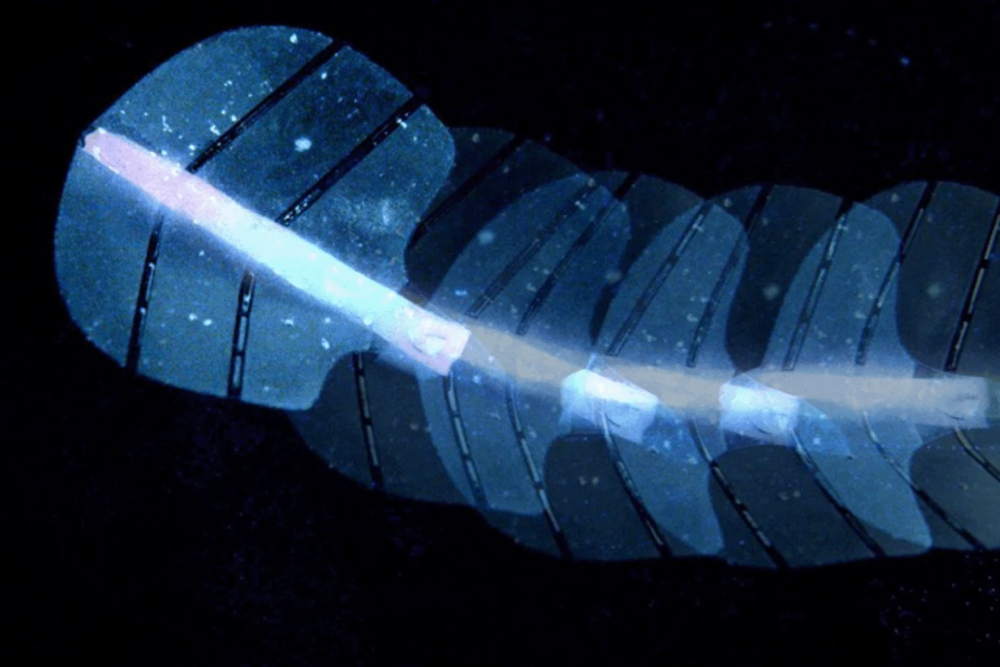 Ключевой элемент технологии — силиконовые мембраны с микроскопическими порами, которые удерживают пузырьки воздуха. При воздействии ультразвука пузырьки начинают колебаться, заставляя мембрану изгибаться или совершать волнообразные движения, имитируя плавники настоящего ската. В зависимости от размера и расположения пузырьков можно программировать разные типы движения: от простого изгиба до сложных волновых паттернов.