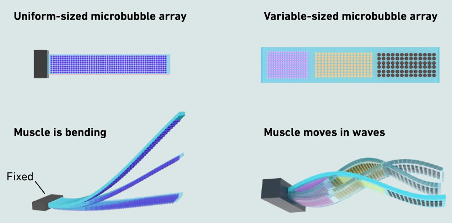 Это показывает, что мы можем использовать микропузырьки для достижения не только простых движений, но и сложных паттернов, как у живого организма.