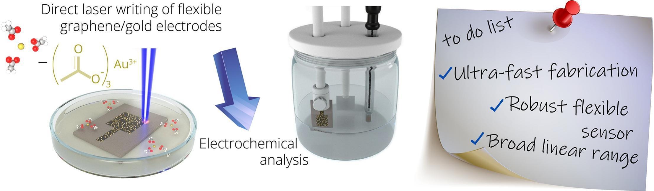 Традиционные методы раздельного детектирования дороги и требуют сложного оборудования. Ученые предложили новый, одноэтапный метод изготовления гибких электродов. Он заключается в погружении полимерной пленки в раствор соли золота и воздействии синего лазера. Это одновременно превращает полимер в пористую графеновую «губку» и осаждает наночастицы золота на формирующуюся матрицу.