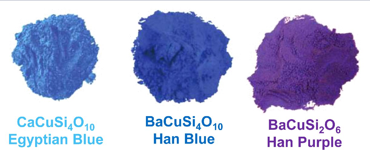 Этот яркий ультрамариновый пигмент использовался в Китае за 700 лет до нашей эры. Удивительно, но это был первый в истории синтетический пигмент, полученный путём сплавления песка, малахита и бариевой соли при температуре около 1000°C — технология, сравнимая с созданием стекла. После падения династии Хань (~220 г. н.э.) рецепт был утерян на 1800 лет. Учёные заново открыли его лишь в 1990-х годах, анализируя древние артефакты. Исчезновение технологии связывают с политическими катаклизмами и сменой культурных приоритетов.